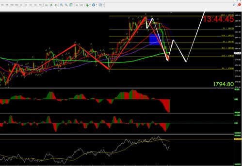 黄金回落日线双连阴 周图倒垂见顶形态