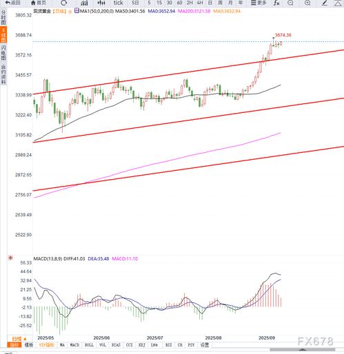 3.技术面呈现突破形态从技术分析角度看,黄金周线图已形成经典"杯柄形态",突破3650美元颈线位后,理论量度涨幅可达4000美元。MACD指标在零轴上方二次金叉,RSI维持在60-80强势区间,显示多头完全掌控局面。值得关注的是,黄金矿业股票指数(GDX)年初至今上涨35%,跑赢现货黄金28%的涨幅,暗示机构资金正进行战略性布局。
